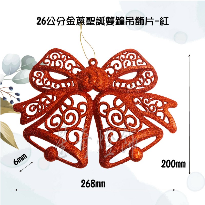/ 26公分金蔥聖誕雙鐘吊飾片-紅