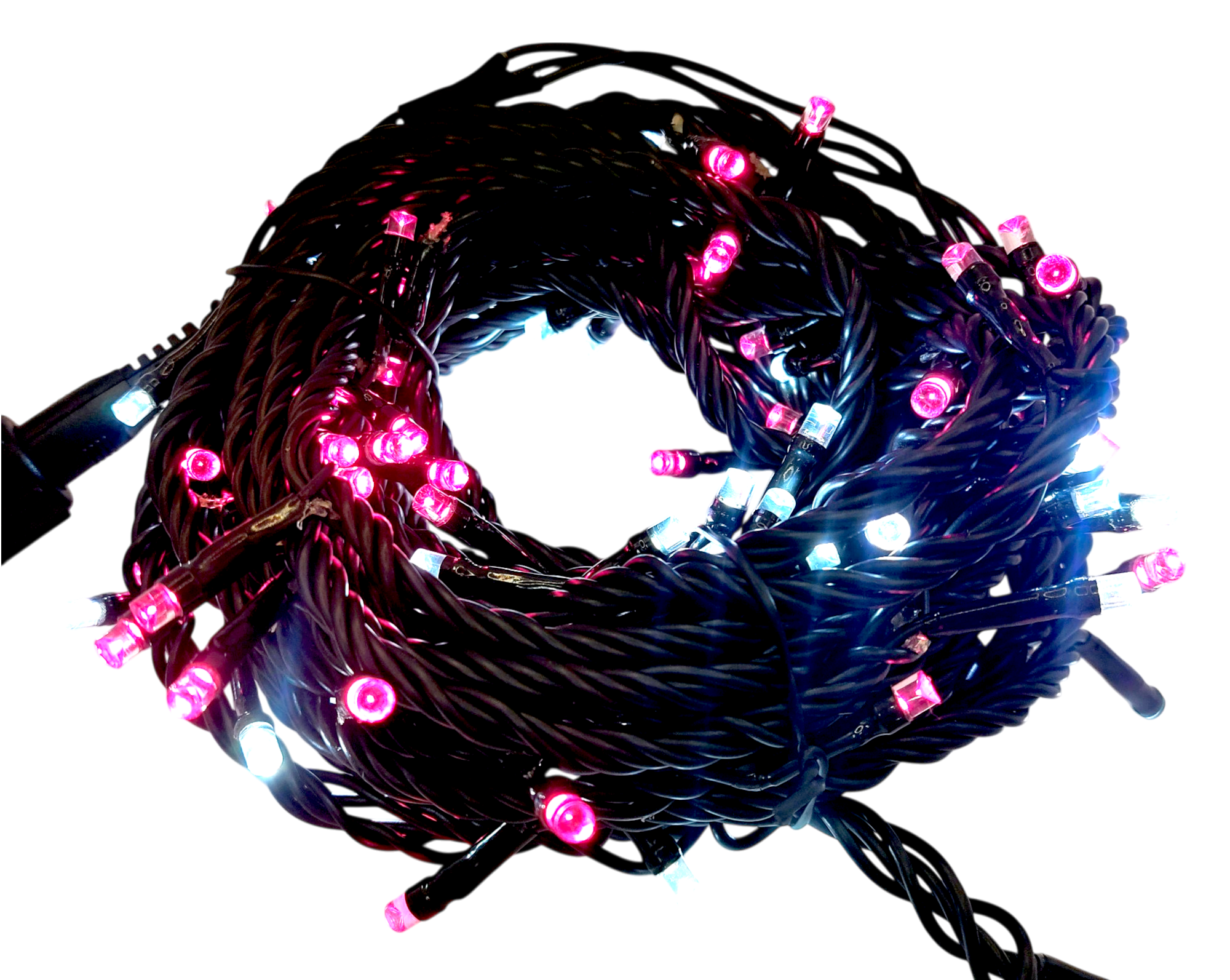LED 100燈樹燈燈串-粉白光-黑線-220V附控制器(閃爍)