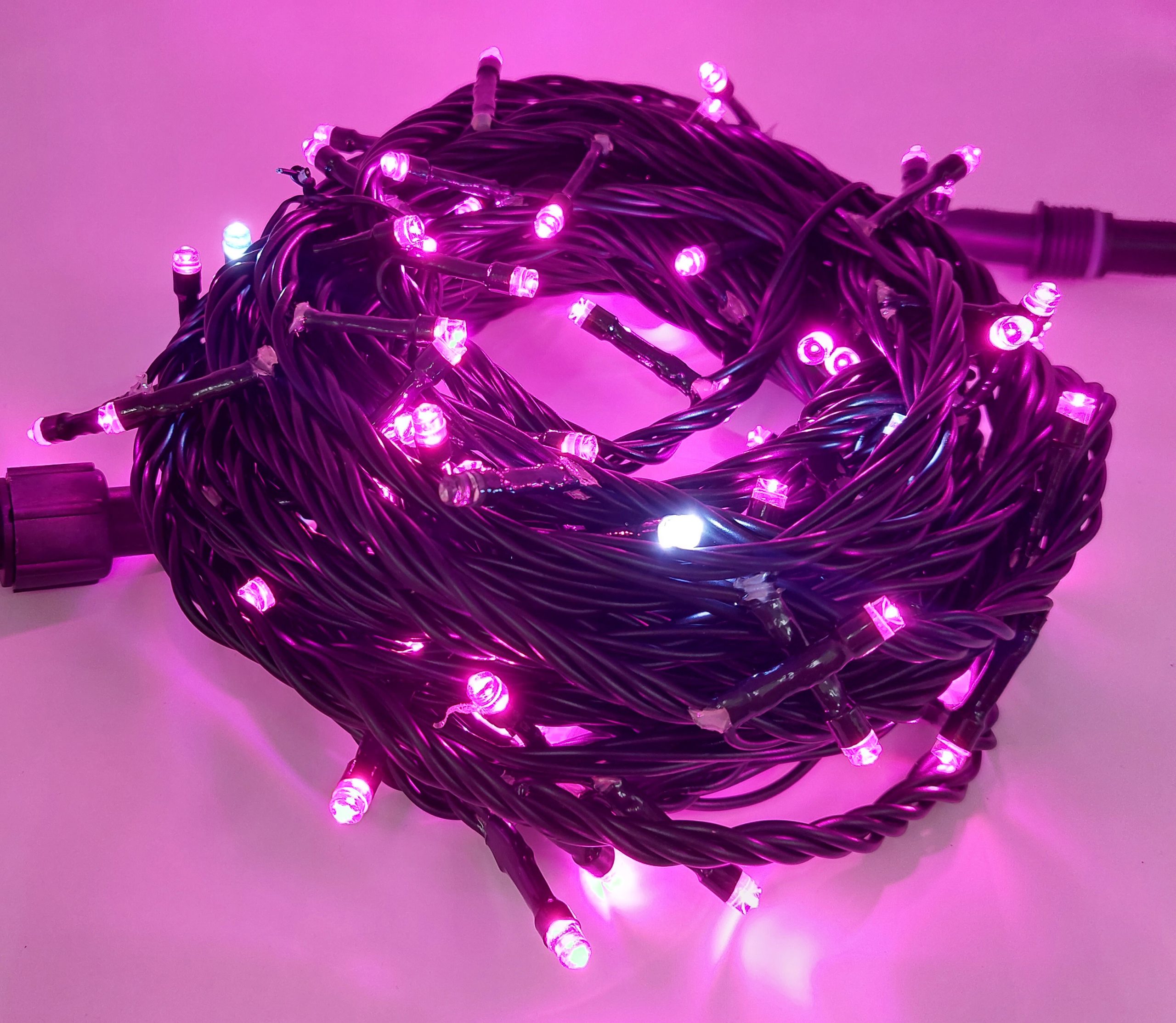 LED 100燈樹燈燈串-馬卡龍粉+白單閃-黑線-220V(常亮)
